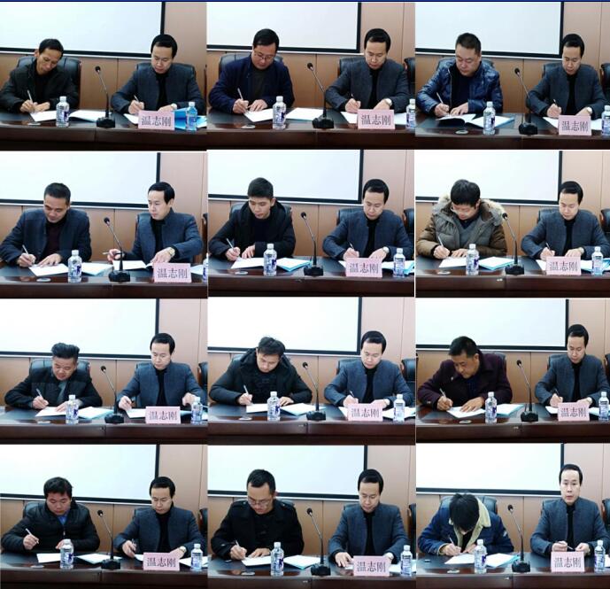 ?大會第三項,由公司董事長、總經(jīng)理溫承橋與生產(chǎn)副總溫志剛、總經(jīng)理助理楊冬平、總經(jīng)理助理項和季、安環(huán)部長程翔;生產(chǎn)副總溫志剛和各項目部負責人簽署各級《安全生產(chǎn)責任狀》。
